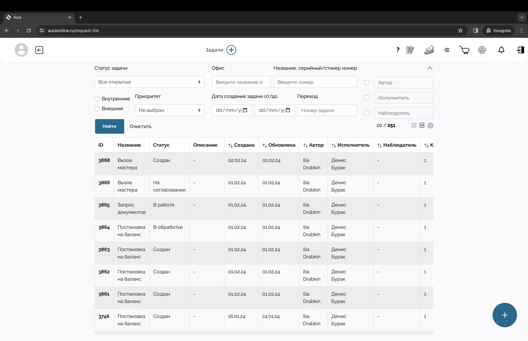 В приложении "AURA" мы предлагаем комплексные аналитические инструменты, которые позволяют нашим клиентам глубоко понять и оптимизировать свои процессы работы с офисной техникой и управления задачами.